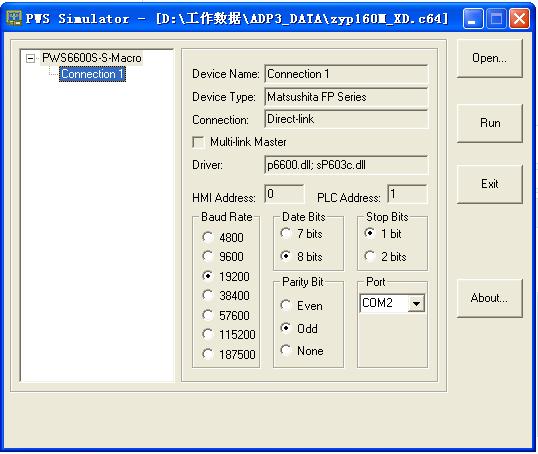 在弹出窗口中,点击Connection1,选择正确的电脑COM口,通讯参数