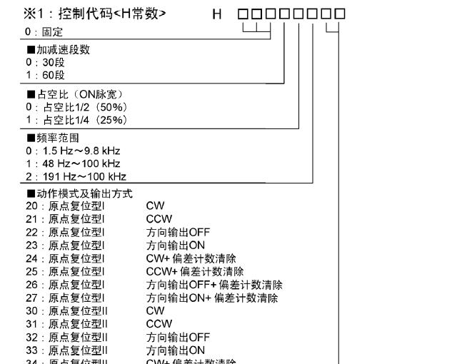 请问在panasonic的fp-x的plc中关于回原点及梯形控制当中,控制代码是Haaabcdee形式的,其中b是加减速段速,c是空占比,d是输出频率范围的选择,关于频率范围有三个选项,即:选0为1.5HZ~9.8KHZ,