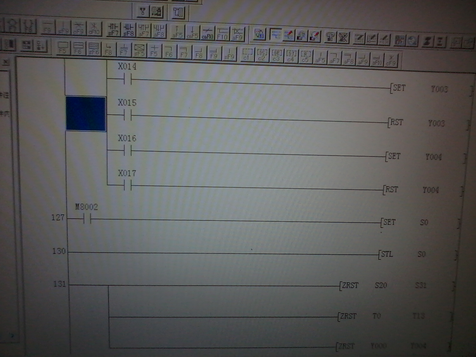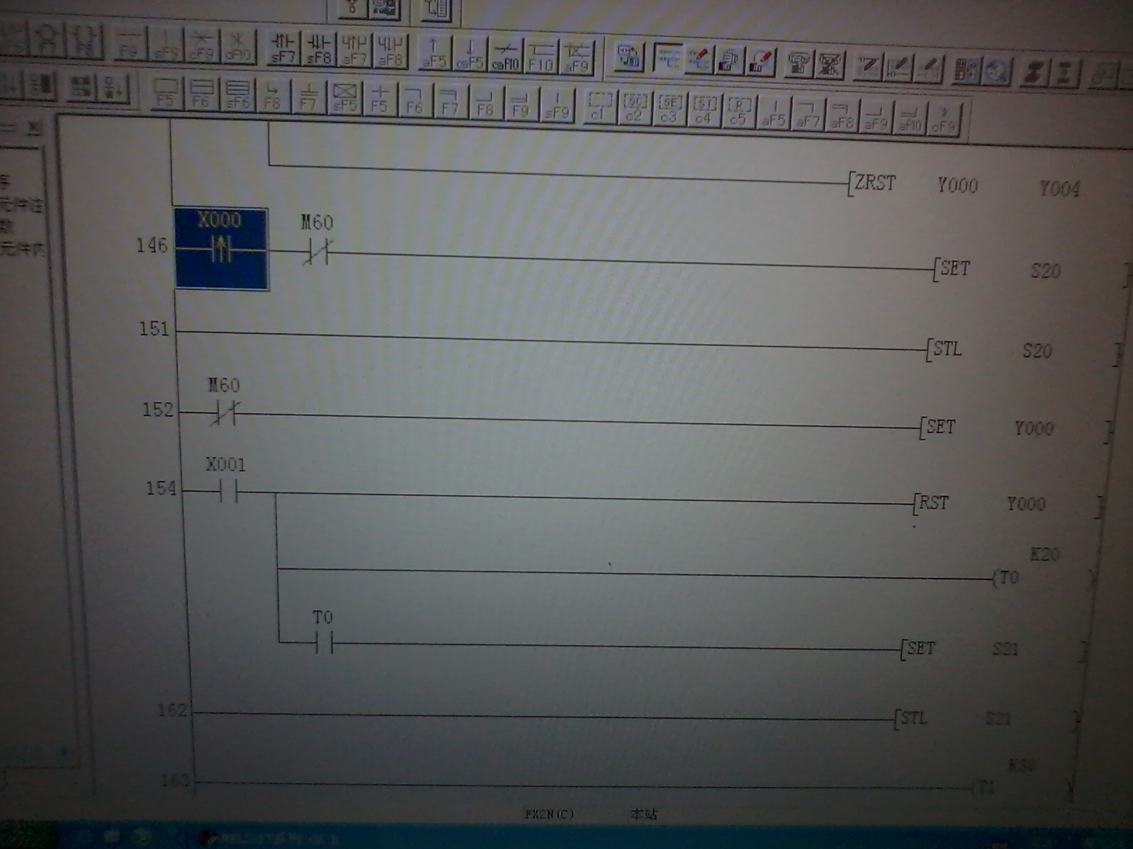 以前很少接触PLC,单位里的电气设备都熟悉了,天天无所是事,只从单位里上了PLC,设备也改朝换代了,自己就有事做了,PLC的外部接线都是我安装的,对它多少有点了解,开始买了一本书,看后也基本写些简单的程序,但单位的程序都是模拟控制,书上没介绍,所以脑子里还是一片空白,好一段时间也没找到这方面的资料,那天无意中来到工控人家园,真是来到了知识王国,第一天就把自己的积分用完了,下了很多资料,真是感谢人家园,真后悔以前的时间白白浪费,我是着写了一个程序,是我单位的设备,我单位的设备主要是升温,加料,升温是用开关量控制的,加料是用比利阀控制的,开始我就学习升温的资料,很快直接升温我回了,但有时间限制的升温我搞了很长时间,也问了很多高手,有说用PID的,有说用PWM的,但我看PID是控制模拟量的,PWM是平均控制的,还有时间我也不知怎么用进去,可能我还不会用,我想了很长时间,终于想了一个办法,就是用变化的时间和变化的温度去比较,得到很好的控制,望高手看后能够给与批评指正。我说一下设备的控制要求及工艺流程,按一下启动按钮XO,进水阀打开Y0,水满X1,Y0关闭,Y1报警,Y2电机运转,开始升温30度,温度到开始加料,加料完毕又升温60度,温度到,保温20分钟,加料,完毕又升温,60度升到80度,要求一分钟一度,就这一部,不好写,温度到,保温30分钟,时间到,电机停止运转,放水,结束。工艺大致是这样的,还有自动送料我没写,有流量计和电子称,以后再写。下面我把程序传上来,望大家看后多给意见啊,我将万分感谢。