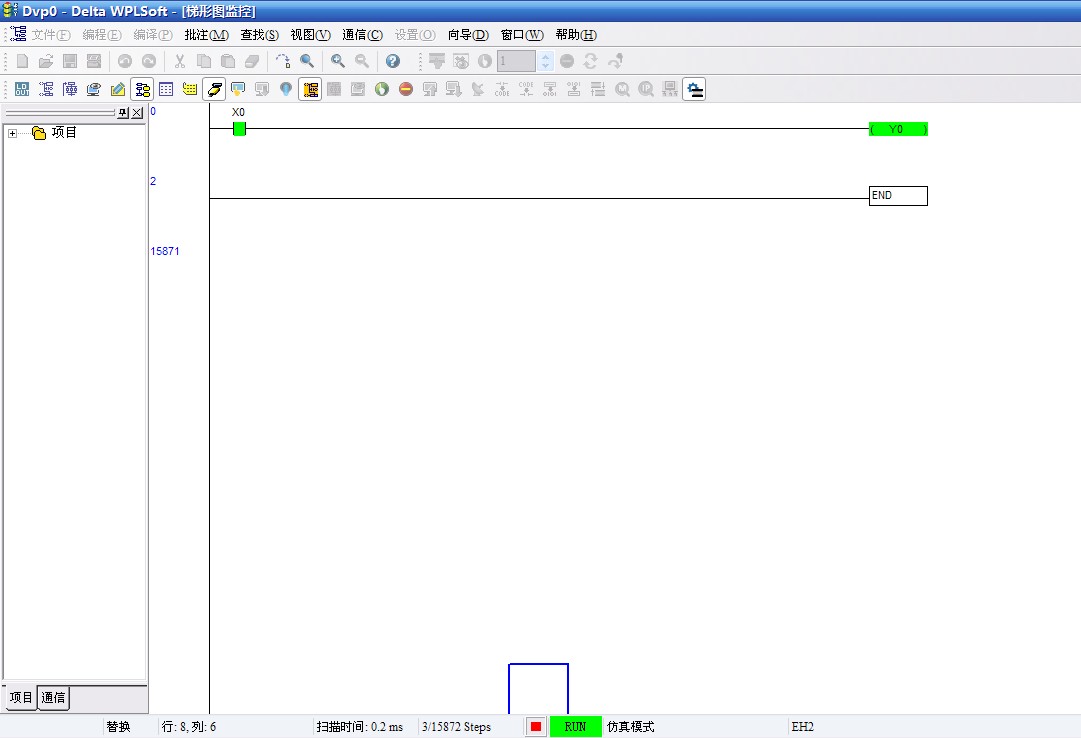 台达要这样才能仿真。,一.单击仿真器; 二.单迹线上模式;三单击运行PLC;四.单击装置监视窗口;五单击装置名称,输入装置即可