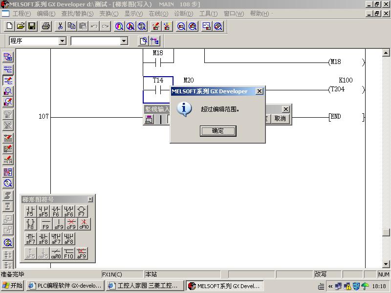 在GX Developer编辑梯形图时还没有输入多少行,就出现“超过编辑范围”的提示。怎么办?设计的梯形图还没有输入完。这可怎么办?由于刚涉及PLC,还请大家多多指教,请请了