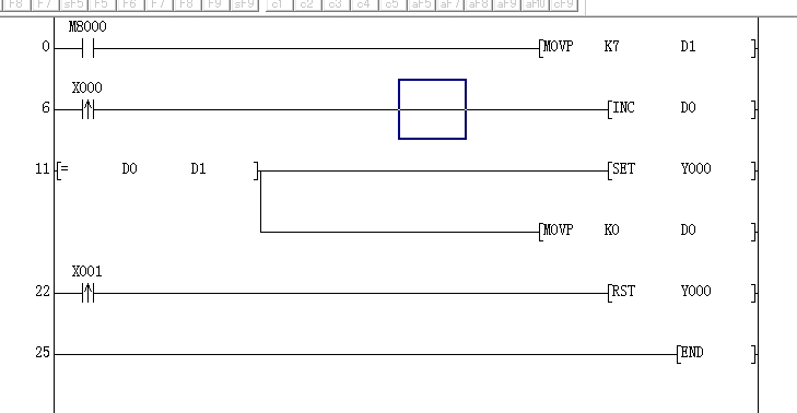 4楼 matengfei你好可以帮我改X0上升沿检出或找个其它上升沿时 设定数7 开始从1数起 数到7时 7清0 上升沿每检出一次 设定数为1