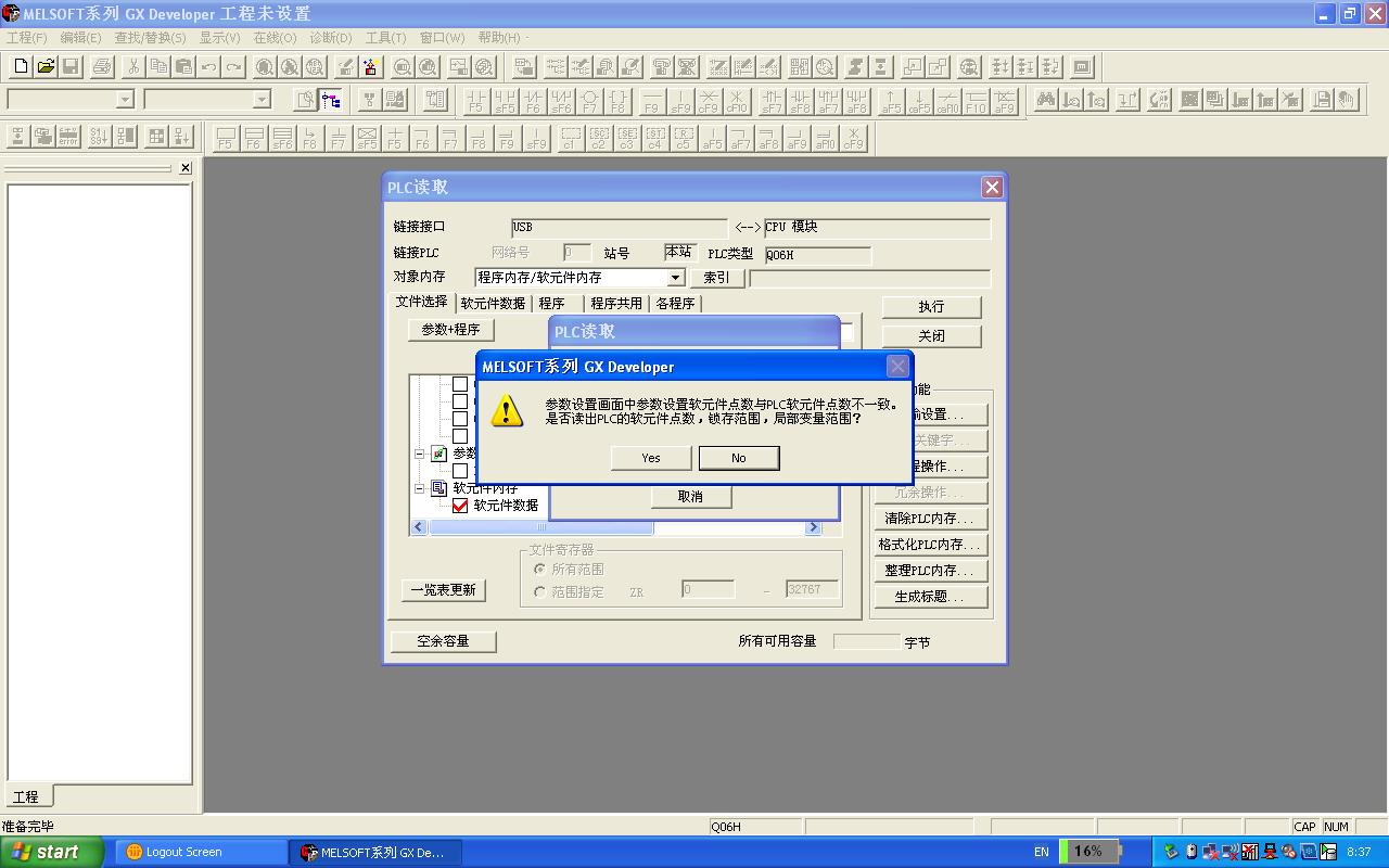在从三菱PLC下载软元件内存时出现的问题