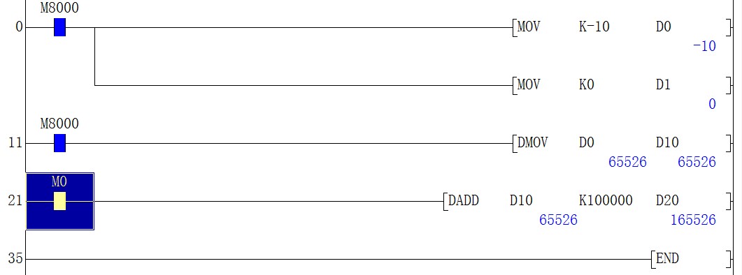 DADD是32位运算,请把D10,D11,当做一个32位寄存器来看