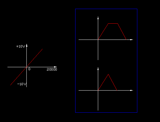 FX2N-4DA 正负10V输出,电压输出是左边红色直线,那伺服电机转速也是这样的,怎么样让电机转动如右边红色曲线呢