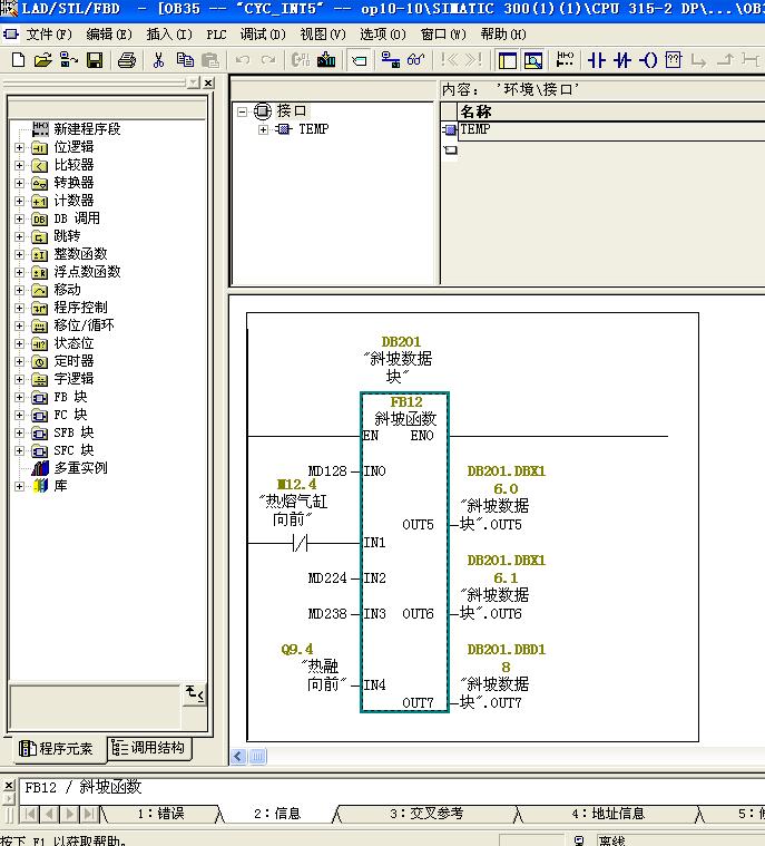 图片: [删除]哦,FB12中确实用到了IN 和OUT 我可不可以理解为,如果在这里不定义IN和OUT 在FB12程序里直接写地址也行?他这样写只是为了在FB12编程中便于编写(直接写IN和OUT就行)?图中有“ #IN1"和 ”#OUT5"如果前边没定义IN和OUT 我可不可以直接写M12.4和DB201.DBX1?您说的是这意思不?