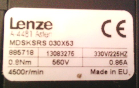 主要是伺服电机虽然是伦茨的,但在铭牌上找不到电机的代码,而控制器C0086电机选型时0 就是非伦茨电机的意思!电机型号: