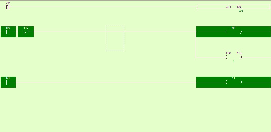 版主已经回答了,Y1断开1个扫描时间之后就恢复了。要想间歇性通断,通常的编程是用两个计数器来完成。