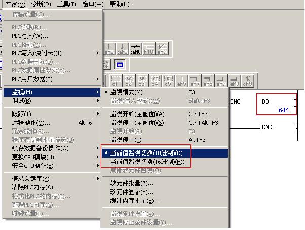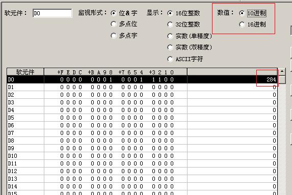 在监控三菱FX-3U PLC时数据寄存器显示的数字是十六进制的值,怎样才可以把他切换成十进制的值?