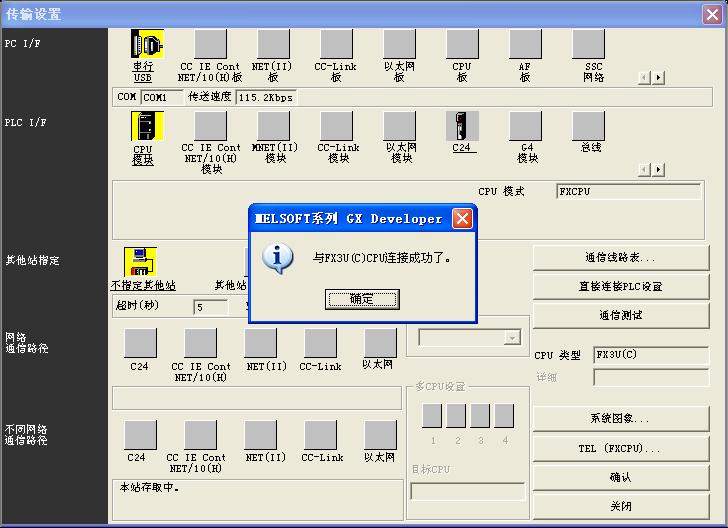 昨天在一家五金厂调试程序,发现电脑与PLC老是不能通讯,在传输设置里面点击通讯测试按钮显示通讯成功,如下图: