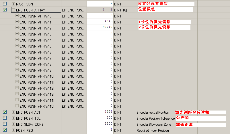 7位置移行机,用激光测距控制停止减速位置。挂在dnet总线上