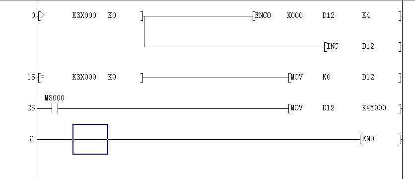 引用引用第4楼znz43于2013-06-28 17:14发表的 :供参考。当X0-X11有多位ON时,以高位ON为准,低位忽略。