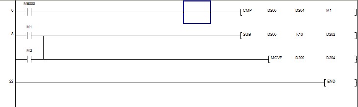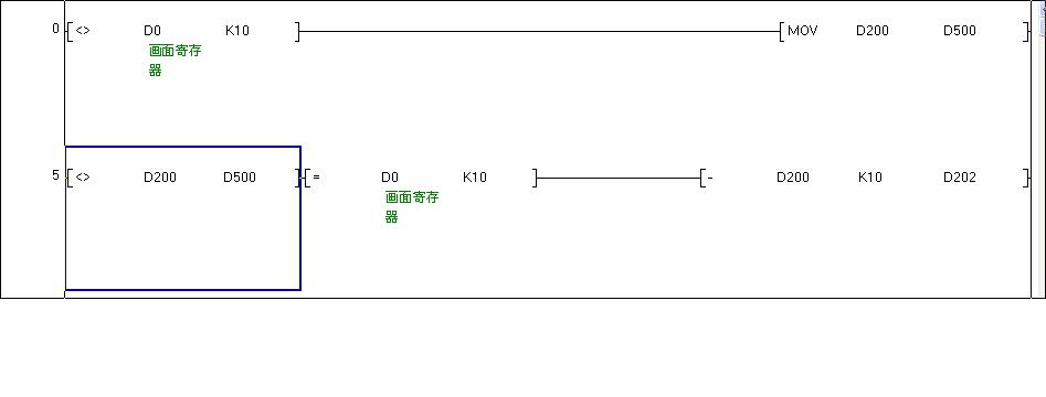 [ - d200 k10 d202],如何让d200的数据不是一直减10,只有d200的数据发生变化时才减10,比如:d200=100 那d202=90; d200=90,那d202=80;d200的数据是触摸屏里输进去的