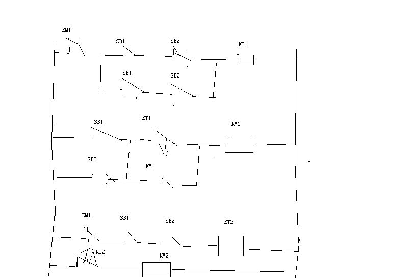 控制要求:双手同时在0.5S内同时按下按钮,输出电磁阀,通过另一个时间继电器控制输出电磁阀的时间。目前我要用到的时间继电器是2个,中间继电器3个,按钮2个来控制