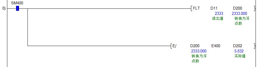 10/4000=实际值(D200)/读出值(D11) 那么 实际值(D200)=(10*读出值(D11))/4000 那么实际值=读出值/400