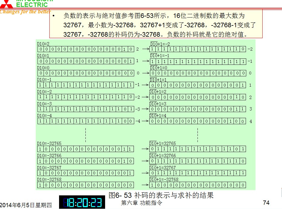 本人有个疑问,是关于三菱PLC功能指令里面的求补码指令(NEG),请见下图课件解释: