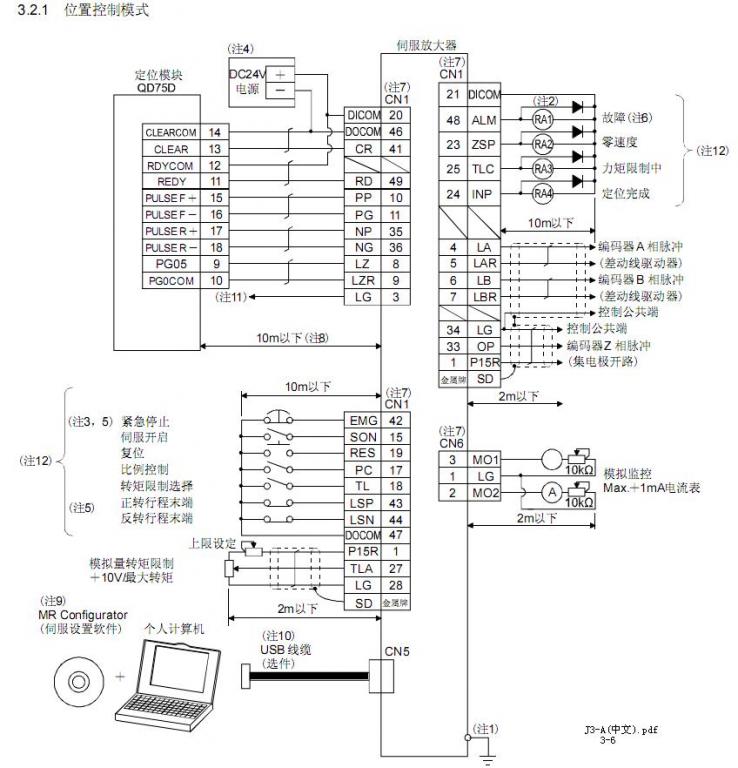 三菱MR-J3伺服实现位置控制 ,看手册不会接线,就大神帮一忙