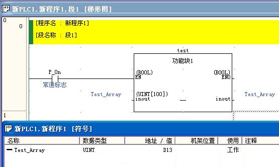 用符号定义一个相同数据类型大小的数组,然后在功能输入脚上直接填入符号名就可以了