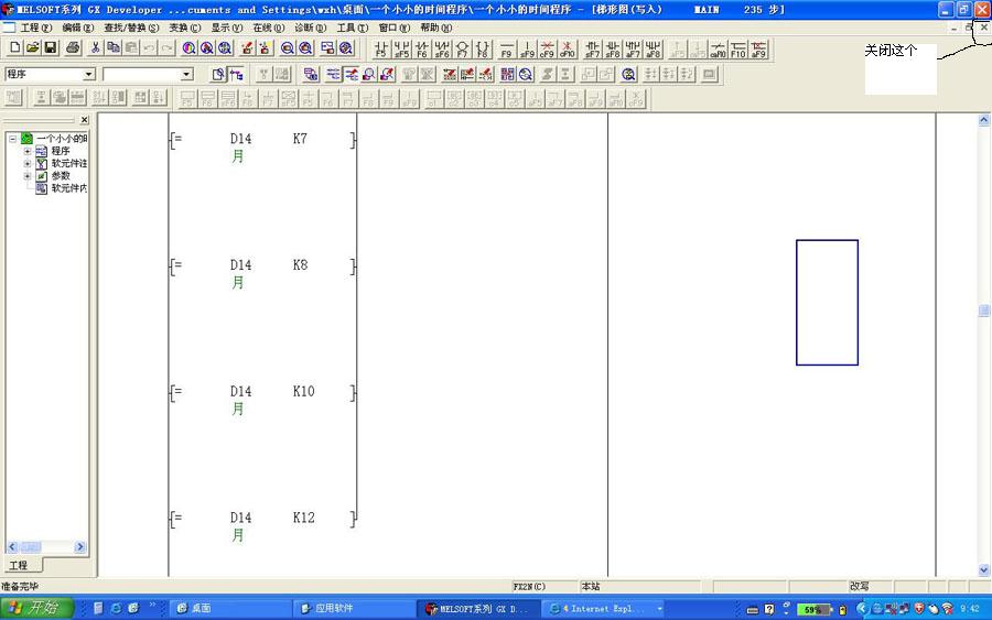引用引用第12楼rtzz于2008-06-20 09:49发表的 :右上角有两个关闭按钮,你点下面一个,把所有的小窗口关掉(gx-developer别关哦),然后点在线里的传输就行了,我以前摸索出来的经验,哈哈