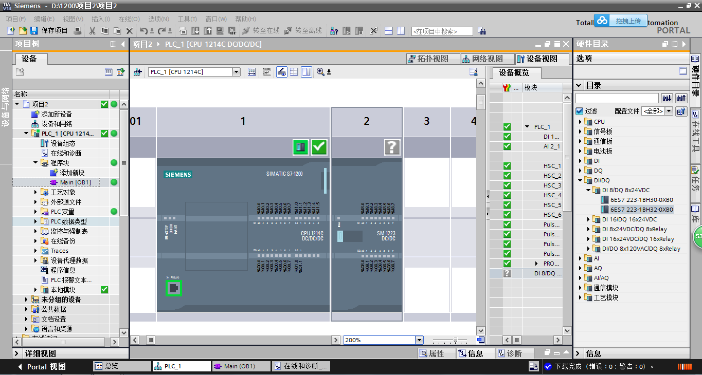 CPU1214C 扩展SM1223 DC/DC一块,无程序开机后扩展模块DIAG指示灯一直闪烁,用软件进入组态界面添加1223模块,写一个点对点测试程序,下载后还是闪灯,反复试了几次不行,断电后再来一遍组态设备下载程序可以了(灯不闪了),问题又来了,这一次直接新建程序下载,没有组态添加扩展,扩展模块输入输出也正常,然后再新建程序随意添加了一个8个点输入模块(实际是1223的8进8出模块),扩展模块还是能用(输入输出正常),我就想问一下1200这个软件到底要不要组态硬件?