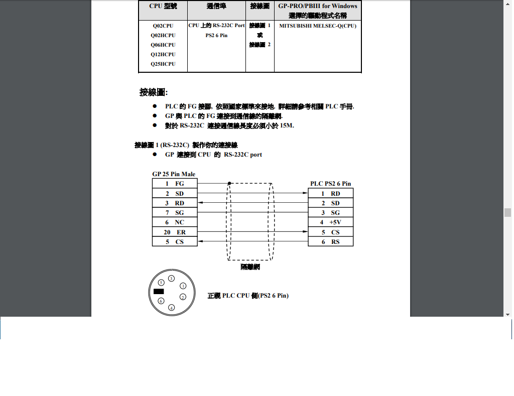 请问一下三菱Q02Hcpu的圆头6针是怎么定义的,怎么个排序方式。网上找了好久都没找到6针脚位定义