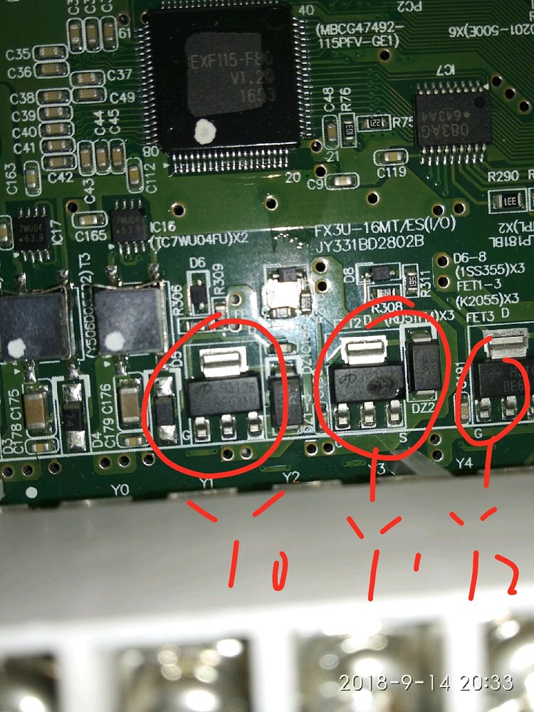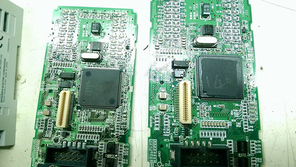 第一张图上面没有三菱logo,记得以前论坛上说正品有三菱标志logo,然后第二章我想问下y1高速输出口H3106 BE631U的元件有人知道吗?烧掉了