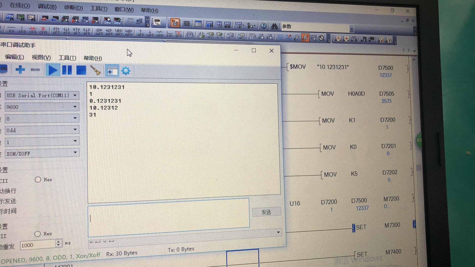 收到的对,看你串口工具,接受是30个字节没毛病,就是你3次发的有换不规律的行,要不换个串口工具,或不发送OAOD换个别的