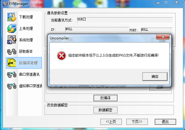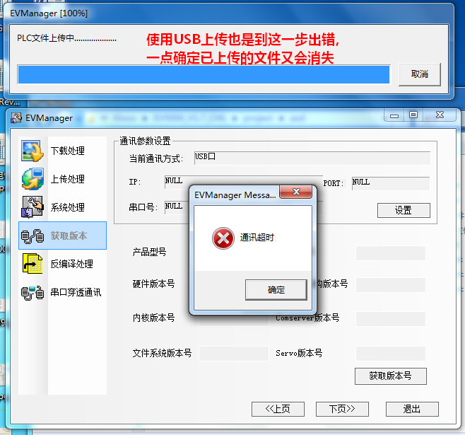 更新:开始装的软件是EV5000 V1.7,现在改成V1.6可以上传工程了,但又遇到了新问题,反编译时提示组态软件版本低于1.2生成的工程文件不能反编译,右是现在EV5000找不到V1.2以下的版本了,谁还有没有老版本?