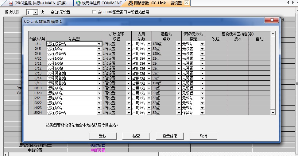 引用引用第4楼ysjwcwwfn于2019-12-26 13:46发表的 :Q PLC参数设置 模块数1 起始io号0000 类型主站 主站cpu参数自动启动 远程网络ver.1 模式 总连接台数1 远程输入m304 远程输出(RY)m112 远程寄存器D1000 (RWr) RWw D2000重试次数3 自动恢复台数1
