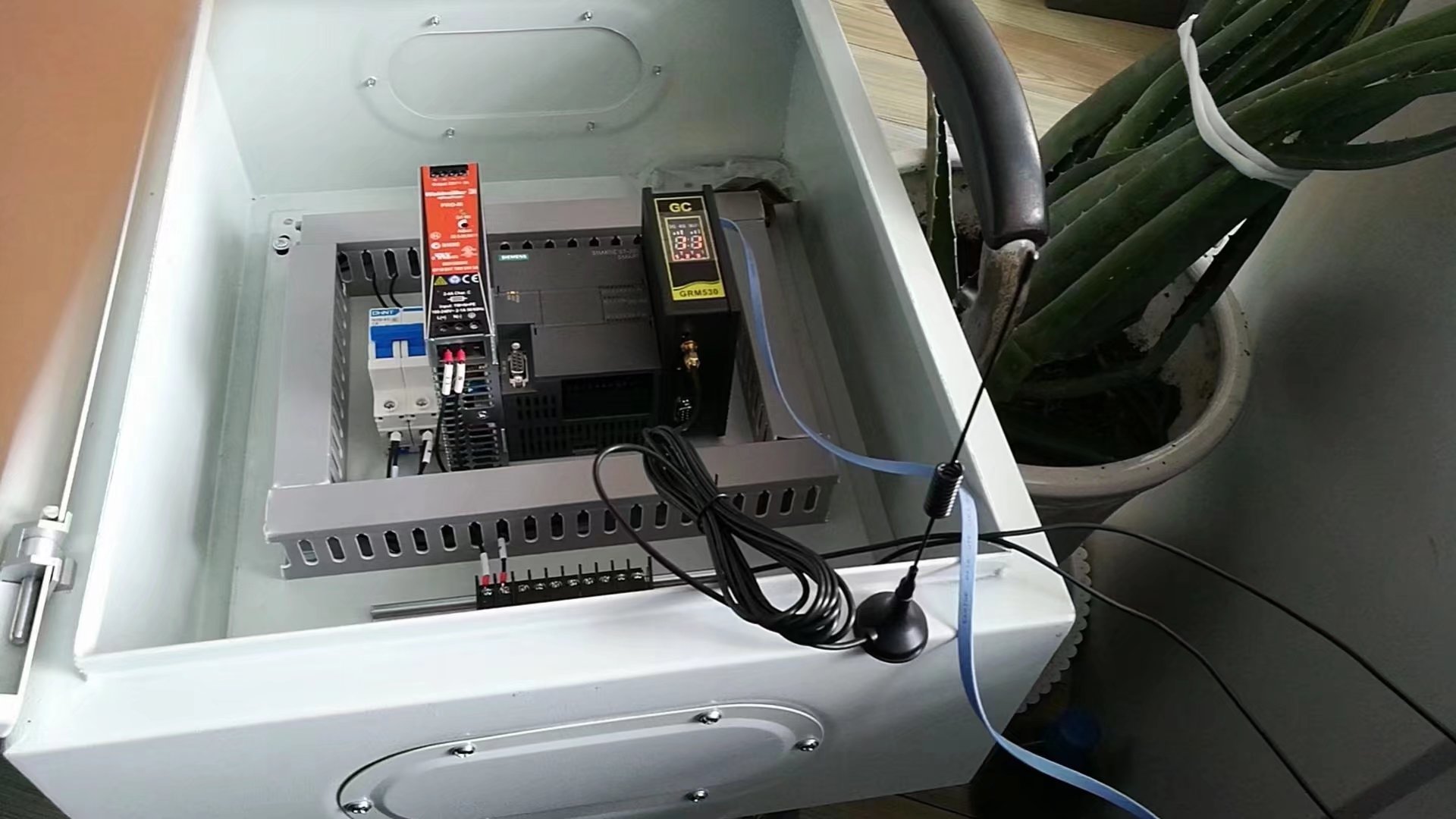 医药行业应用,一个远程模块连接15台1500短信报警1400条,变量1477个。实现远程上下载调试plc,hmi程序,手机APP远程监控plc。