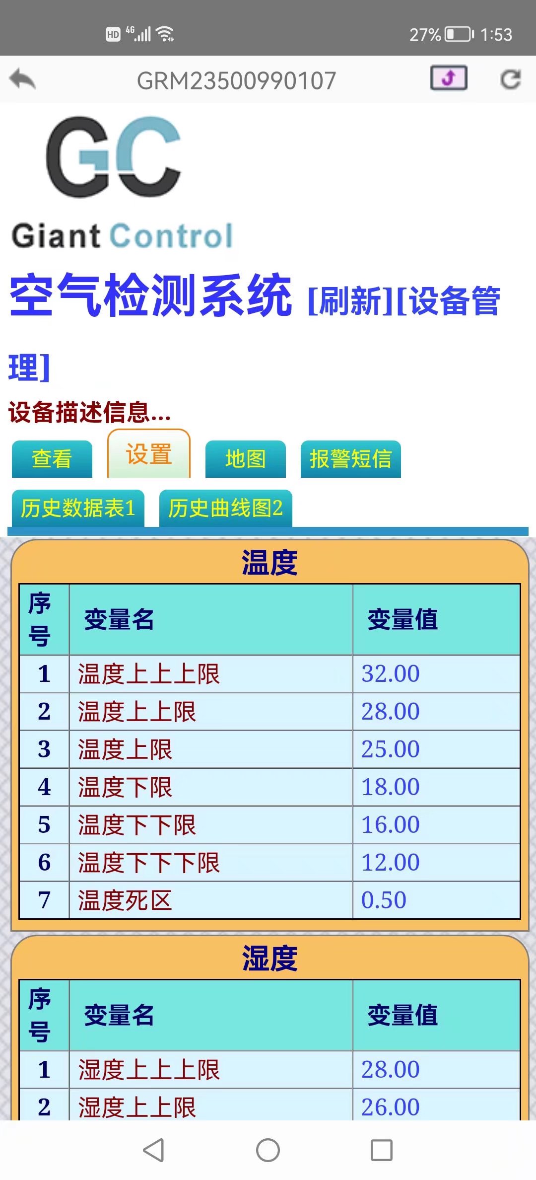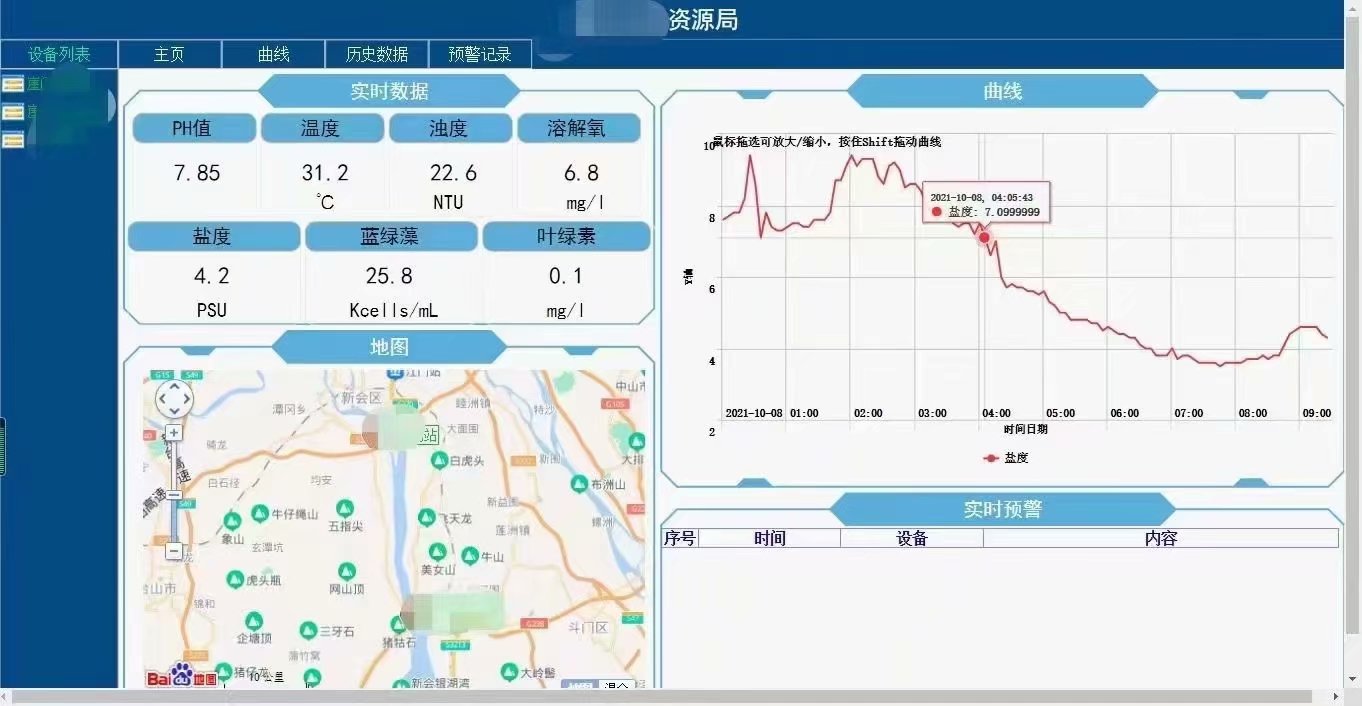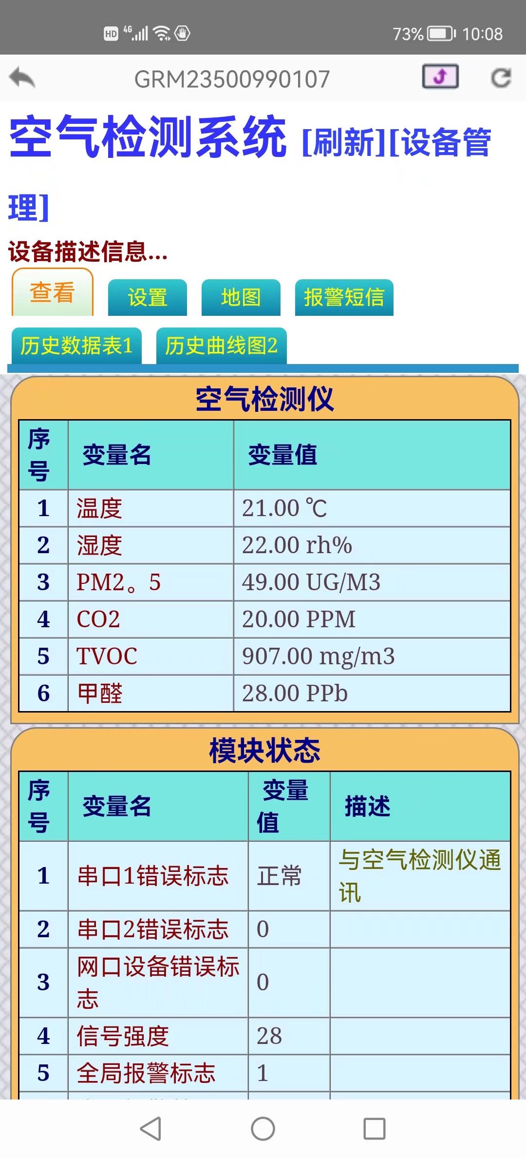 空气检测系统加装远程模块,走485 modbus rtu协议进行通讯实现远程手机APP监控,超标微信告警,数据记录及曲线查询