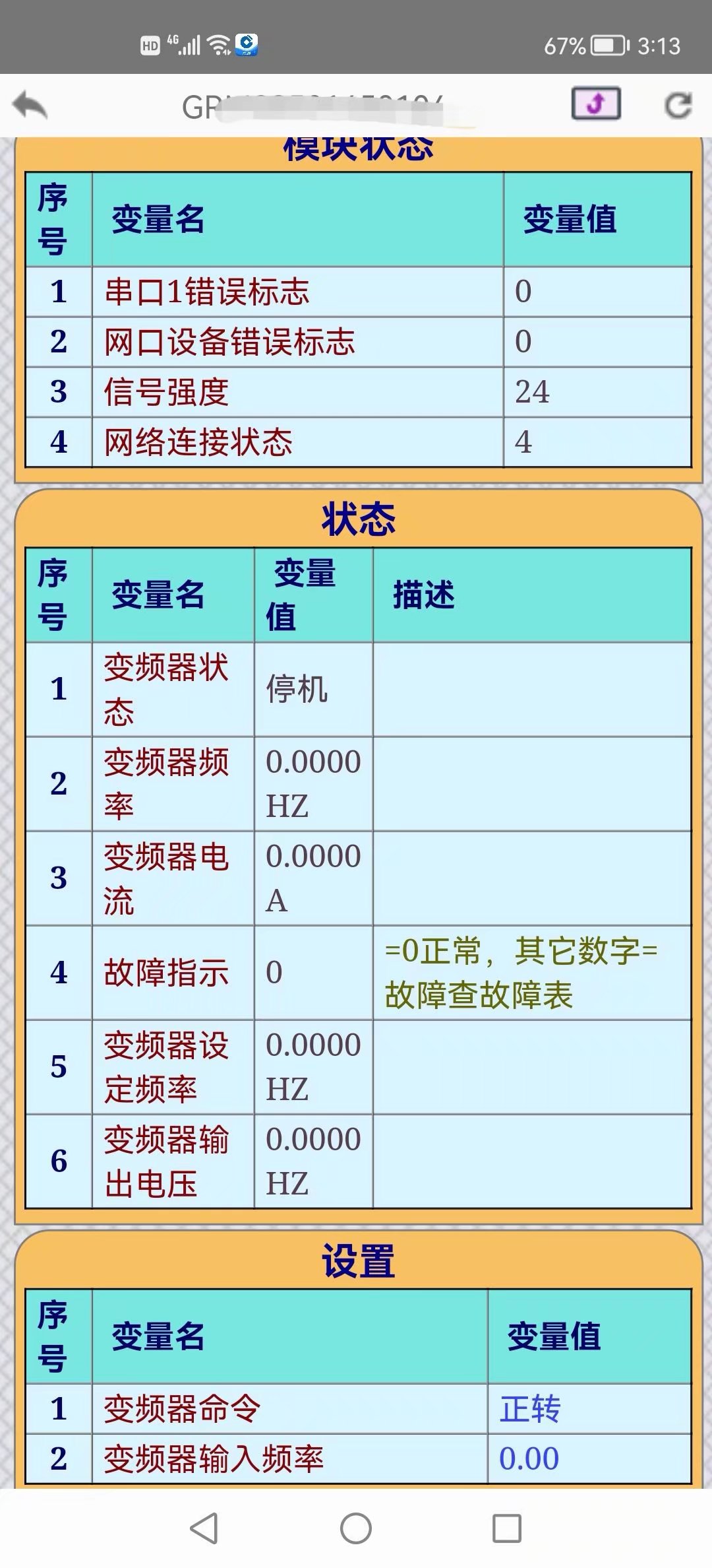 变频器手机远程监控系统,控制开停以及设定频率。利用远程模块走485 modbus rtu协议跟变频器通讯。