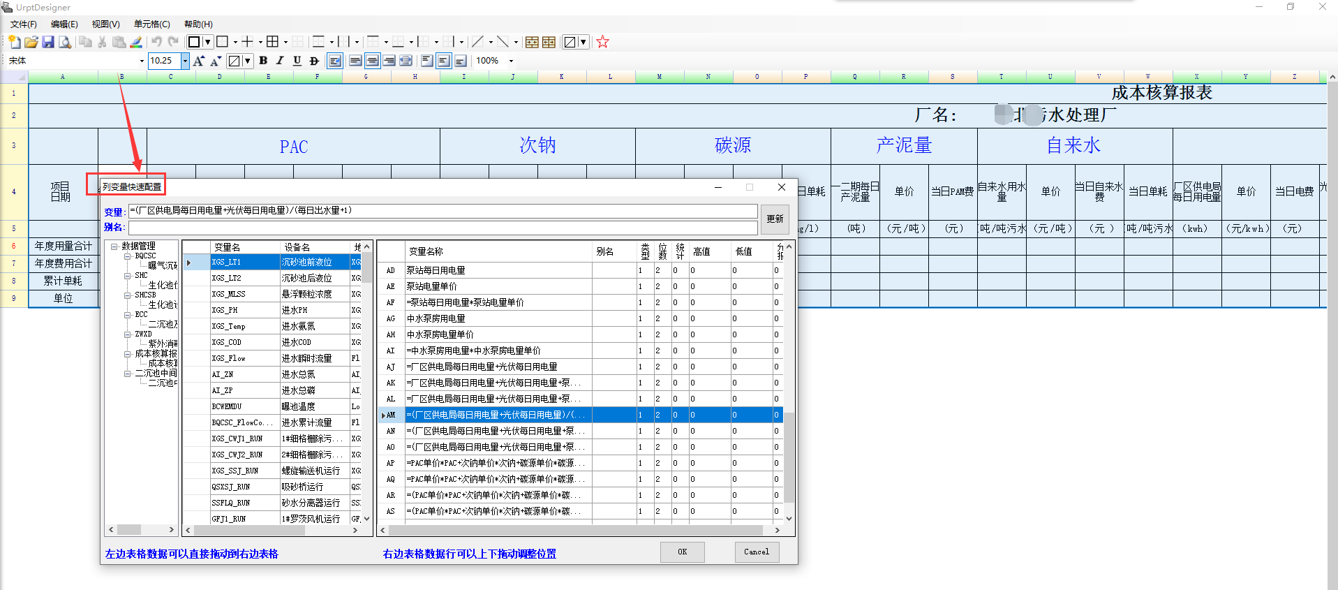 在广大客户的要求及姚总建议下,报表列变量快速配置功能有了较大的改进,不仅可以快速配置,还可以随时查看,随时修改,确实方便快捷,欢迎广大用户使用新版