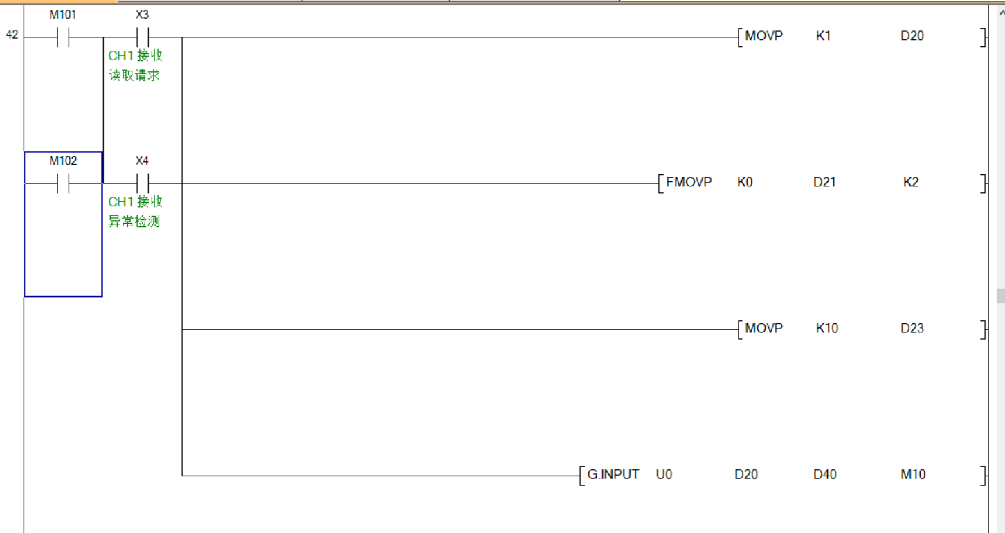 是这样的我的线路跟踪测试,也没有问题。通讯正常。但是读取的数据的地址不知道为啥老是在变动。有时在D43 有时在D42 D41 D40等。程序也是按照手册官方模板写的。