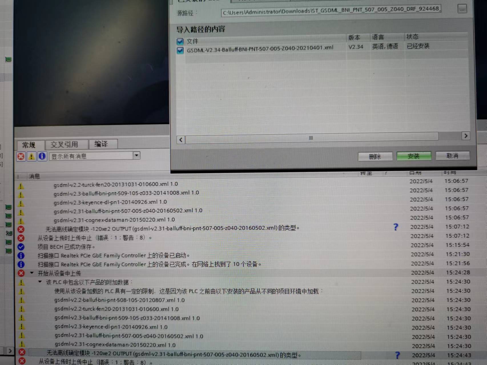 另外你那从站 巴鲁夫输出模块的GSD文件也不匹配,你下载安装的是2021年版本的,而PLC中用的是2016年老版本。
