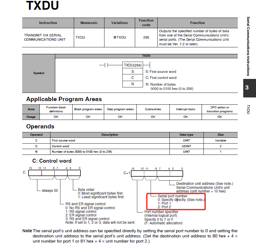 欧姆龙CJ1W-SCU31-V1的TXDU指令详解高手指点,网上一直找不到中文的指令解析,一直无法区分控制那个模块区进行数据发送,请高手指点