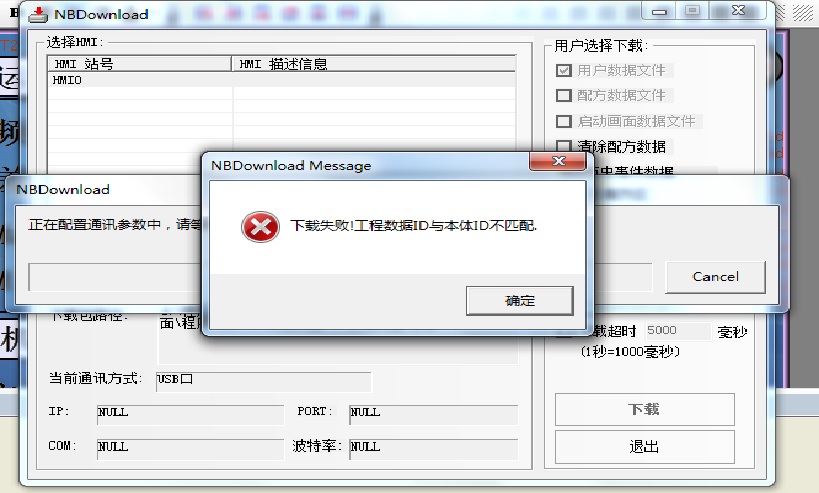 omron NB系列触摸屏下载报警 工程数据ID与本体ID不匹配