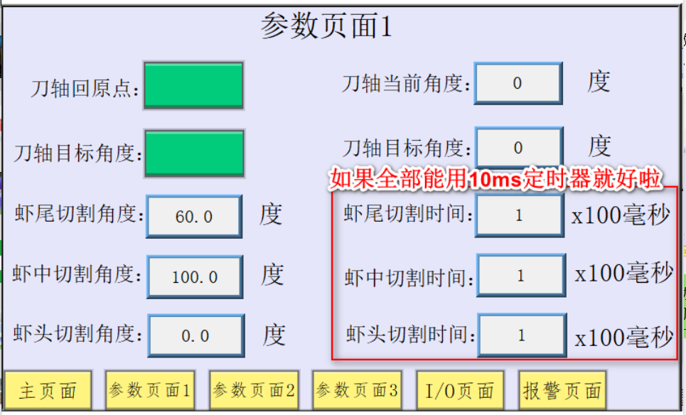 各位大师,这个程序基本能实现所有功能,也能切换(头、中、尾之间部分要切与不切转换),只要时间只能用100ms速度达不到,如果程序中100ms定时器能全部换成10ms定时器就好啦,可惜10ms定时器不够用,大师有办法 吗?麻烦路过大师指导一下,十分感谢。
