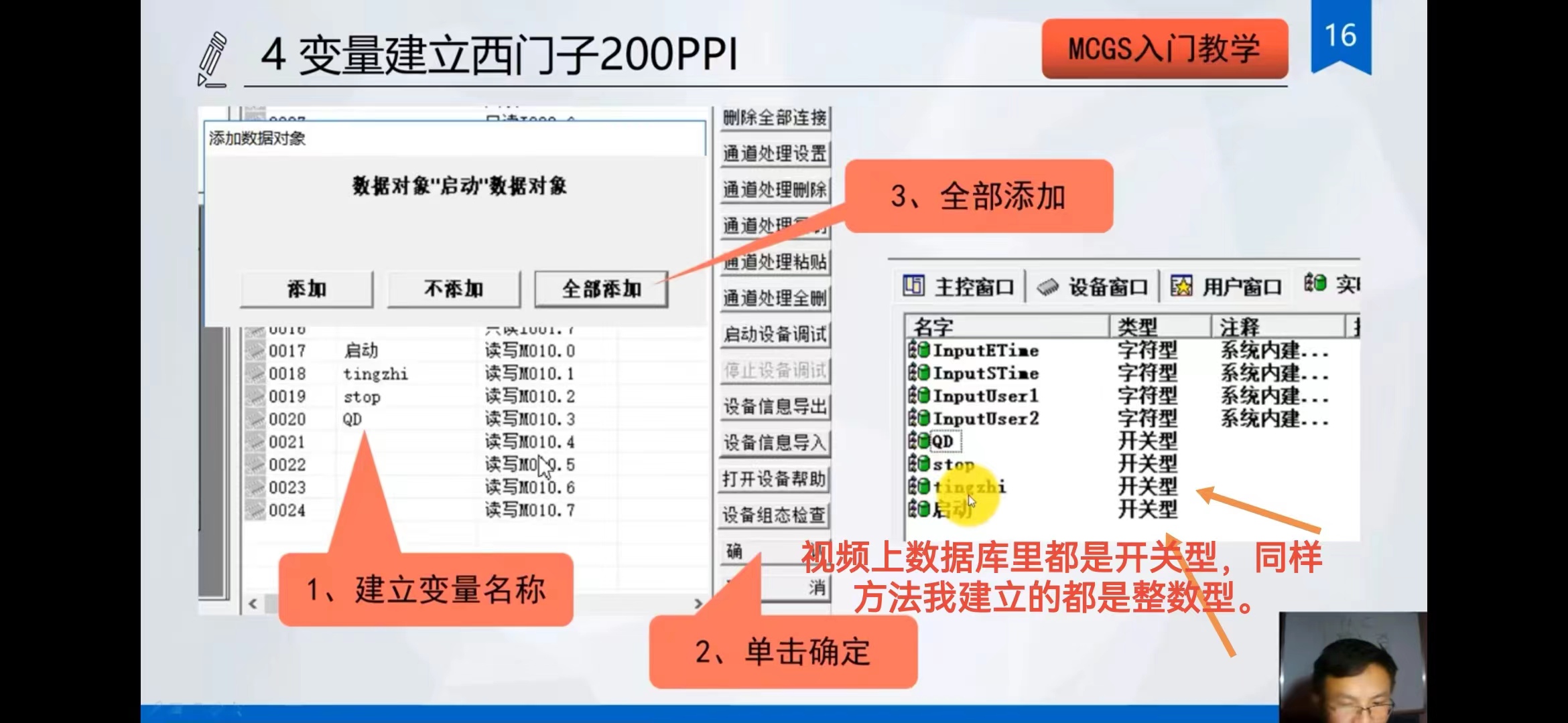 引用引用楼主lzhpsky于2023-10-21 20:41发表的 昆仑触摸屏怎么新建开关类型变量? : [attachment=291038] [attachment=291039] [attachment=291040]组态I的输入点,怎么数据类型里,没有BOOL类型,新建了一个第00位,然后看实时数据库里变量后面怎么是整数?我把这个变量对应到触摸屏上也能用,这是为什么呢?我看视频教程上,I和M在实时数据库里面的后面是开关量啊。。这是怎么回事?