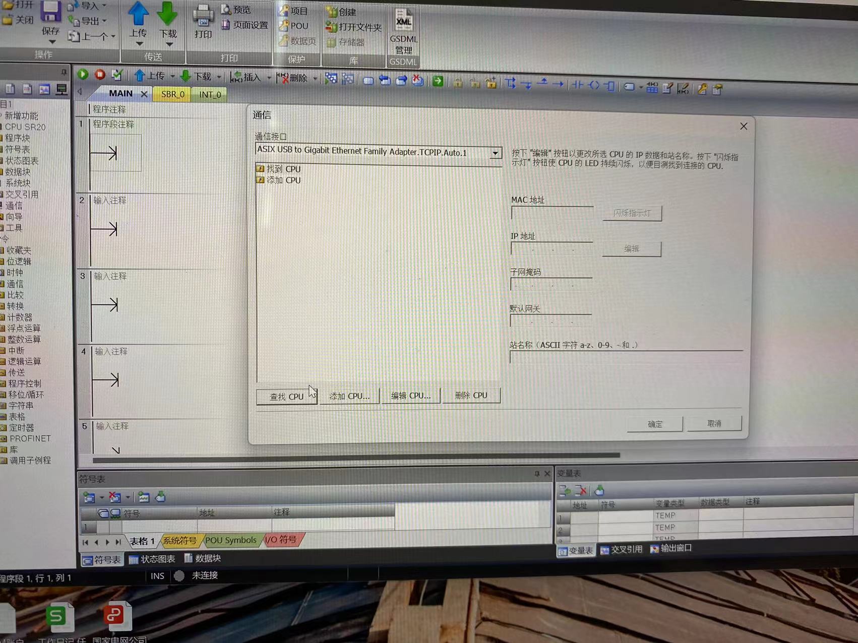 连接PLC,模块上的指示灯正常梁,IP地址设置正确,能ping通,网卡是USB转的电口,没啥问题,就是找不到CPU的IP地址,求助