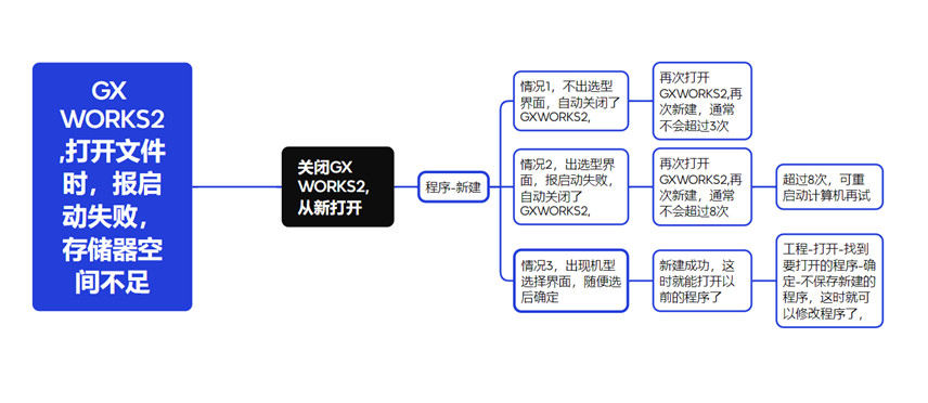 解决方法 打开GXWORKS2-工程-新建-3-10次新建后会新建成功,在此基础上打开要修改的程序即可