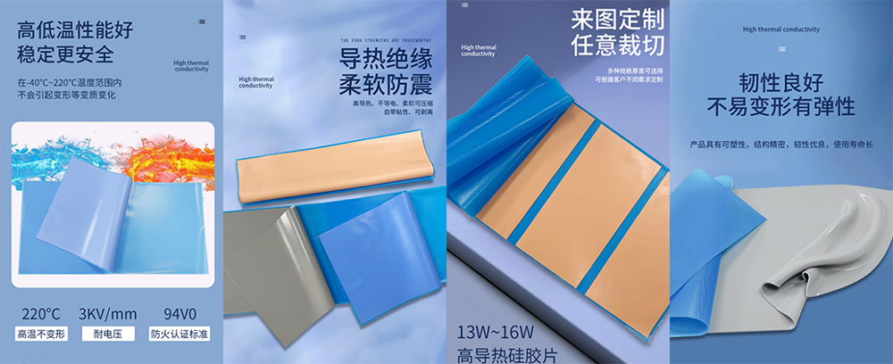 随着设备内部空间愈发紧凑,架构日益复杂,设计者需要一种能够适应不规则表面、承受机械振动、并满足自动化生产需求的材料。软性硅胶导热垫恰好满足了这些需求。其柔韧性允许它在低压力下产生形变,充分填充发热体与散热器之间的空气间隙,实现高效热传导。同时,其片状形态可预先进行精准模切,便于自动化贴装,大幅提高生产效率。此外,其阻燃等级(UL 94V-0)和宽广的工作温度范围(-40℃~220℃)使其能够应对严苛的工作环境。