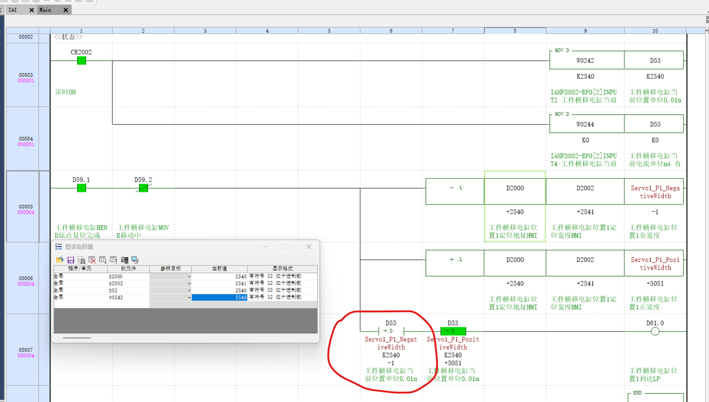 有哪位大佬知道什么原因呢,,这红色圈出来的地方始终不导通 ,软元件监视值也是正确的,实际梯形图中,D53就是比它小 ,不导通
