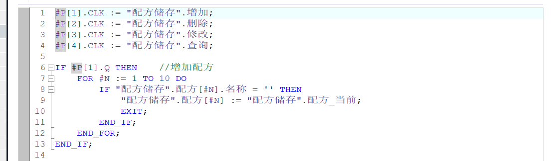 如图是一个配方程序,先调用4个上升沿,但是实际下载进PLC,点击配方增加按钮,P[1]的CLK获得信号,Q点无输出,这是啥原因