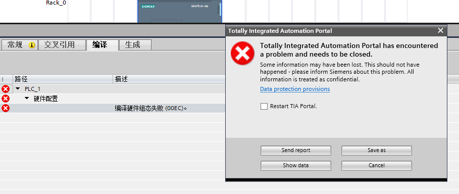 博途V20组态1200PLC ,勾选“在设备中直接设定IP地址” 编译过程中闪退。