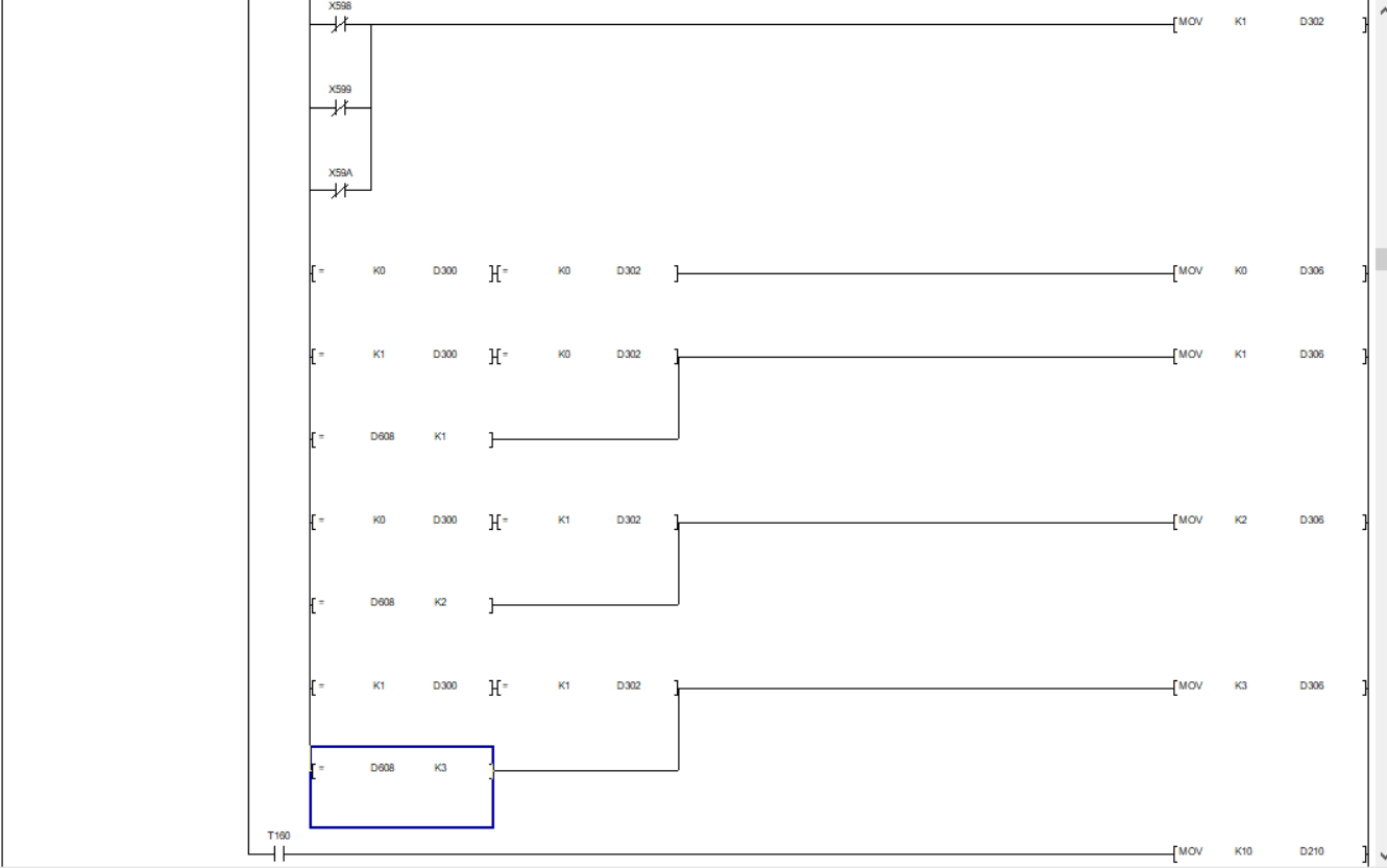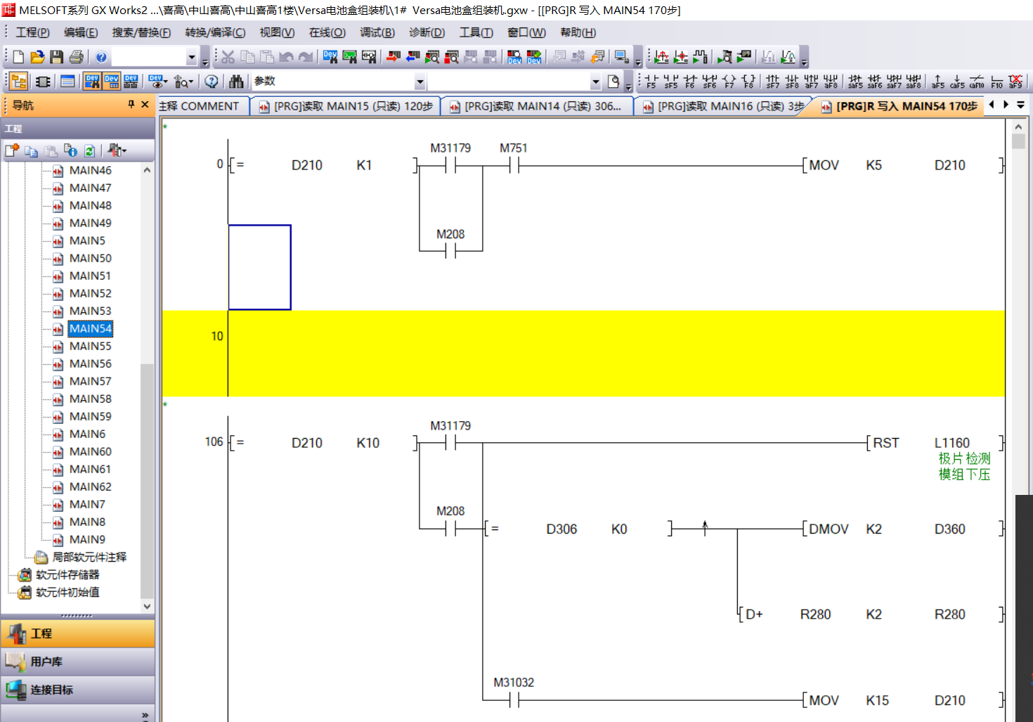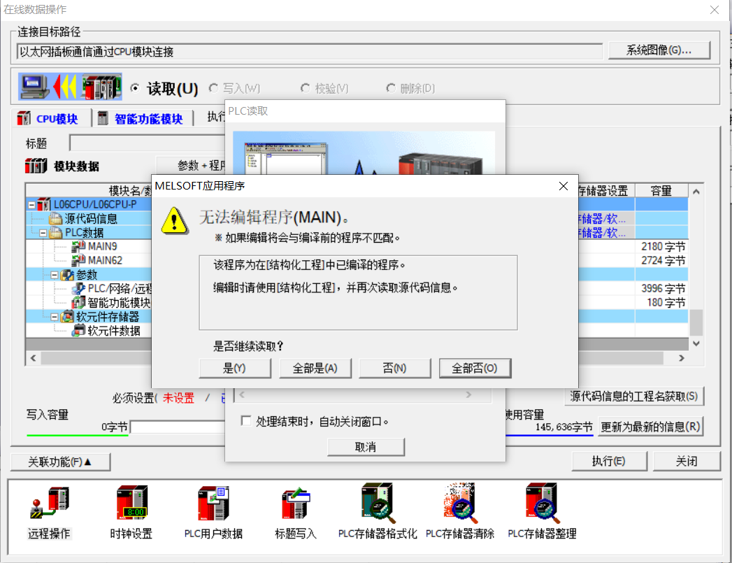 公司有一台三菱L06PLC,程序读出来有一段程序是黄色,而且程序还不可见,但是我查有几个感应器就是在黄色部分里面,现在出问题的也是在黄色部分里面,有没有大佬知道这是什么情况啊,有没有什么解决办法,望不吝赐教