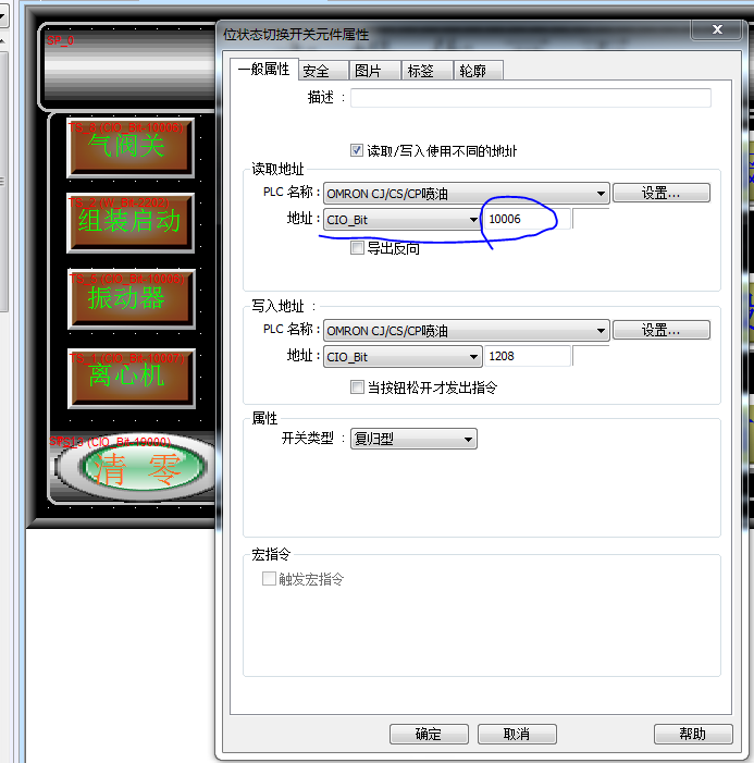 威纶通的字的bit 表述是末端两个是BIT位 比如你的CIO_BIT 10006 表示CIO100的06bit位 同样那个1208是12的bit8