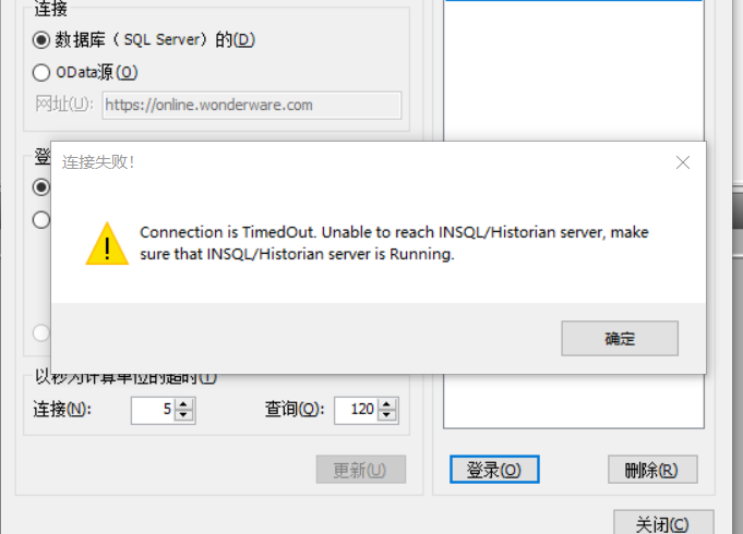 InTouch2020 数据查询时连接数据库失败