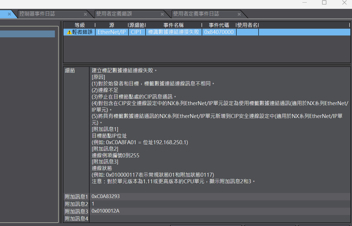 寫到不同版本PLC, EIP出現錯誤