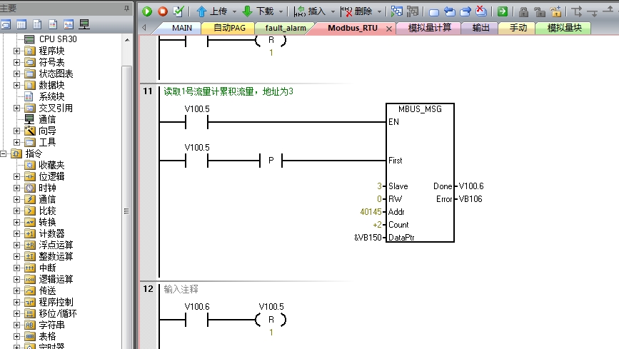 西门子smart和流量计通信请高手给看看读不到数据